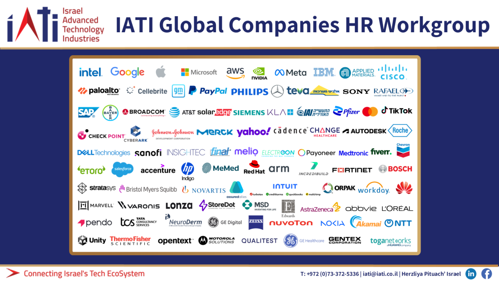The IATI HR Global Companies Workgroup is a senior leadership forum bringing together HR VPs from all the global tech companies operating in Israel. The Workgroup serves as a high-level platform for rapid knowledge sharing and coordinated action, delivering timely industry data and insights, particularly during periods of crisis and uncertainty.