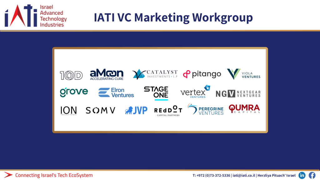The VC Marketing Workgroup, composed of senior marketing, investor relations, communications, and value creation leaders from Israel’s leading venture capital funds, works to strengthen Israel’s global VC positioning and visibility. Members collaborate to build a unified narrative, develop shared marketing tools, and advance coordinated international outreach, particularly in the U.S., while addressing common positioning and reputational challenges.