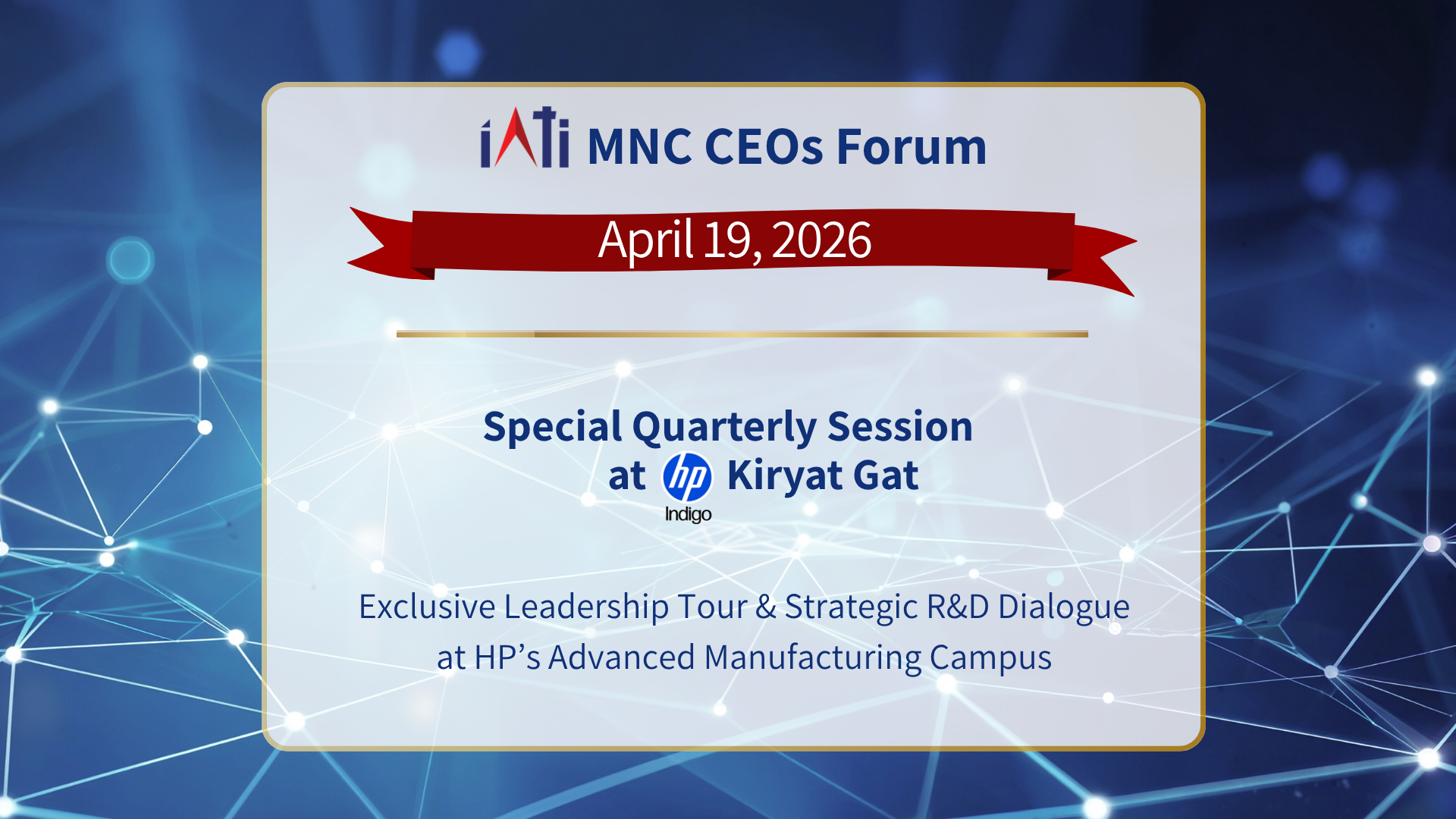 This quarter's IATI MNC Forum meeting will take place onn April 19, at the HP Advanced Manufacturing Campus in Kiryat Gat.