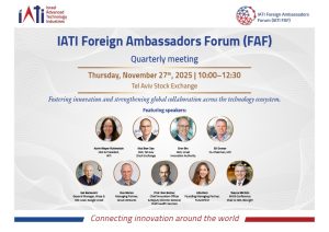 On Thursday, November 27th, 2025, IATI held the quarterly meeting of the Foreign Ambassadors Forum (FAF) at the Tel Aviv Stock Exchange, bringing together more than 80 ambassadors, economic attachés, and senior diplomats representing leading countries operating in Israel.